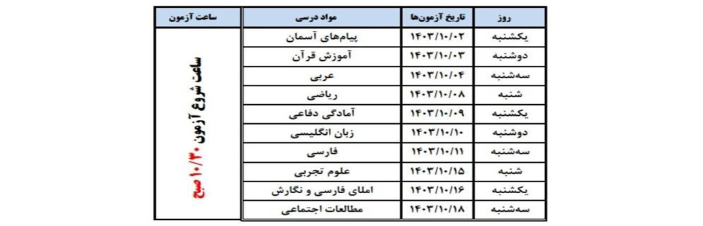 اعلام برنامه امتحانات پایه نهم دانشآموزان تهران