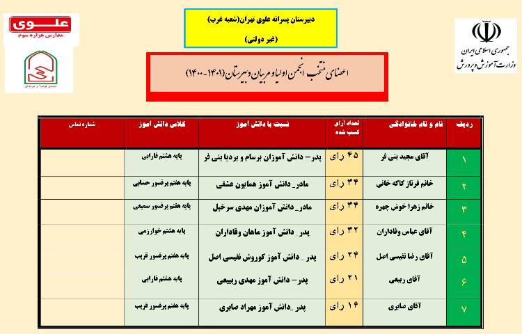 اولین جلسه انجمن اولیا و مربیان دبیرستان با حضور مدیریت مدرسه و آقایان:وفاداران،نفیسی اصل،بنی فر(غایب)