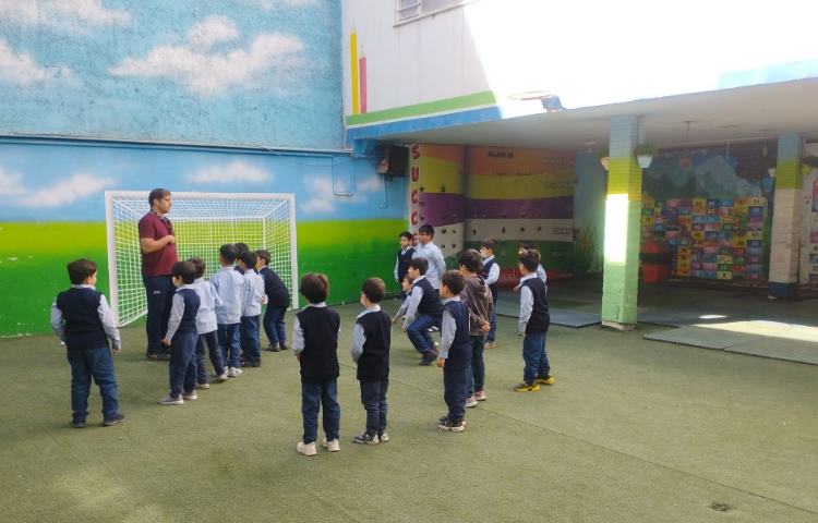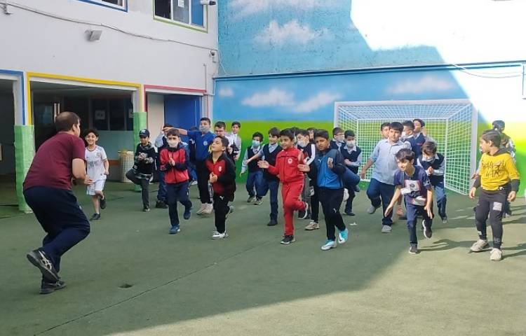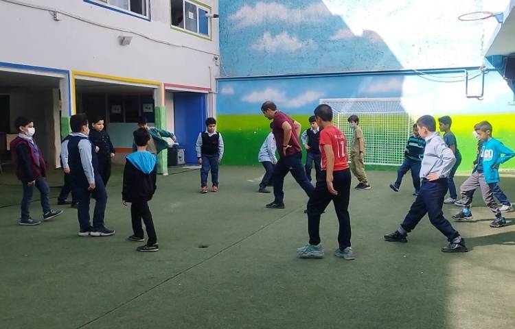 برگزاری کلاس ورزش پایه های سوم تا ششم در حیاط مدرسه