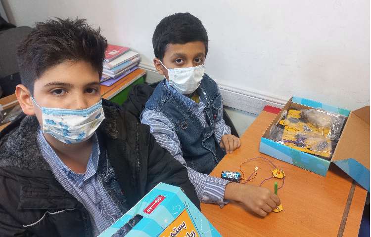 توضیح: دانش‌آموزان با قیچی و مقوا ماسک قورباغه را ساختند
