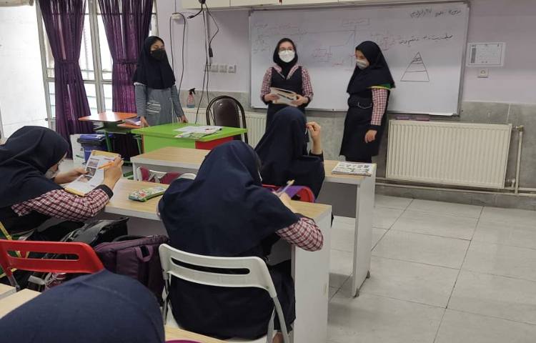 Singing a song.تکرار و مرور گرامر های دروس گذشته با حل تمرین از grammar book روی تخته کلاسی.