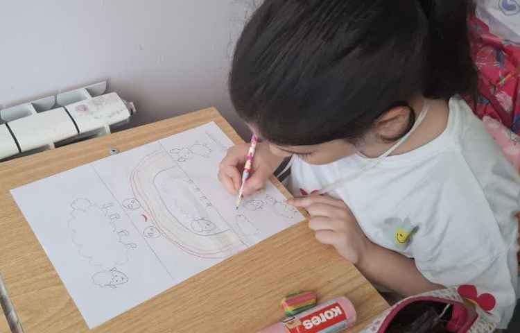 فعالیت ساعت هنر امروز انجام نقاشی گروهی در قالب طرح چهار خانه.به هدف آشنایی با همکاری در کار عملی