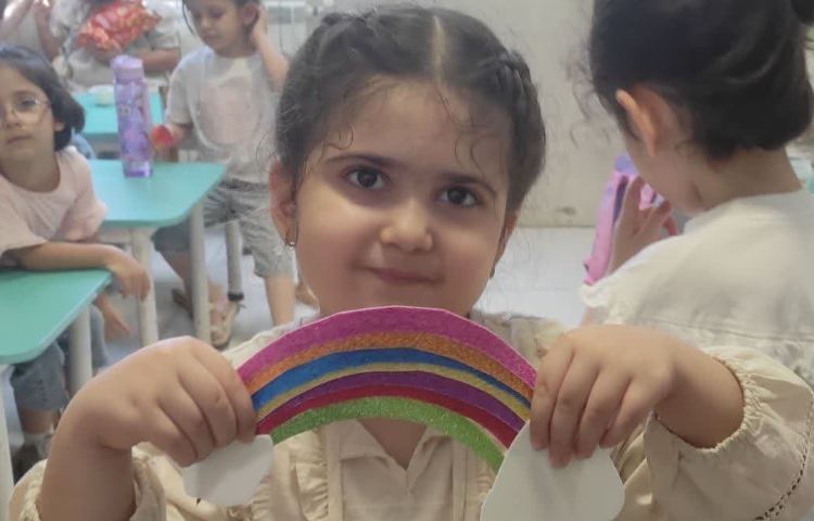 زبان آموزی: مرور بر صداهای اول آ ، اِ ، اَ و صدای آخر آ همراه با کشیدن نقاشی این صداها با ابزار آموزشی فلش کارت های زبان آموزی نوشتاری: رنگ کردن رنگین کمان با رنگ انگشتی با اجرای طرح کلاس بدون دیوار ( cwow) با هدف تقویت عضلات دست و انگشتان دفترشطرنجی: پررنگ کردن خطوط نقطه چین و رنگ آمیزی با هدف تقویت مچ و انگشتان دست و آمادگی برای نوشتن