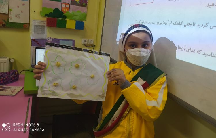 فعالیت: فعالیت های آموزشی در سومین روز از هفته ی ملی علوم: در ابتدای کلاس، دخترانمان در گروه های هاوسیستمی خود قرار گرفتند سپس با صدای ملایم جنگل و صدای جیرجیرک توجه دانش آموزان را به خود جلب نمودیم؛ 1 - پروژه ی " کرم شب تاب ": قبل از شروع آزمایش دانش آموزان به مشاهده‌ی کلیپ ها و تصاویر جذاب مرتبط با پژوهش خود پرداختند برای ساخت کاردستی کرم شب تاب دخترانم بدن کرم را با گواش مشکی رنگ زدند؛ سپس با قیچی بخش پایینی استوانه را به شکل یک طاق برش دادند. برای سر کرم نیز یک دایره مشکی را قیچی کرده و دو تا چشم عروسکی را روی صورت آن چسباندند . دست، پا و شاخک های کرم شب تاب را با پیپ پاک کن ها ساختند و پس از آن به سراغ بال های کرم شب تاب رفته و با چسب به قسمت پشت بدنه وصل کردند. در نهایت شمع وارمر را روشن کردند و کرم شب تاب را به آرامی رویش قرار دادند و یک کرم شب تاب زیبا ساختند. 2- پروژه‌ی" ترفندهای نمکی ": این پروژره شامل چندین پروژه ی کوچک بود و طبق روال هر روزه، دلبندانم این زنگ پژوهشی خود را با تماشای تصاویر و ویدیو هایی حاوی اطلاعاتی در ارتباط با موضوع آزمایش آغاز نمودند. در این پروژه دانش آموزان 4 آزمایش را انجام دادند‌. "تعادل تخم مرغ" در ابتدا دخترانم در مورد خواص تخم مرغ در گروه های خود صحبت و سپس آموزگار از آن ها می خواهد تا تخم مرغ خامی را برداشته و سعی کنند آن را روی سطح پهنش به حالت تعادل نگه دارند.سپس روی سطح صاف تپه ی کوچکی از نمک درست کنند. تخم مرغ را با دقت کامل روی نوک تپه نمک به حال تعادل نگه داشته سپس به آرامی روی تپه بدمند تا نمک اضافی از اطراف آن کنار رود. اگر این کار را با حوصله و تمرکز انجام دهند، موفق خواهند شد. بلورهای نمک تقریباً مکعب های کامل هستند و به شکل گیری یک پایه برای حفظ تعادل تخم مرغ کمک می کنند. در پروژه ی تعادل تخم مرغ، یک کار ویژه از دانش آموزان خواسته شد تا بتوانند دو تخم مرغ را با استفاده از نمک روی هم قرار دهند. گروه آبی با تمرکز و همکاری موفق به این کار شدند.