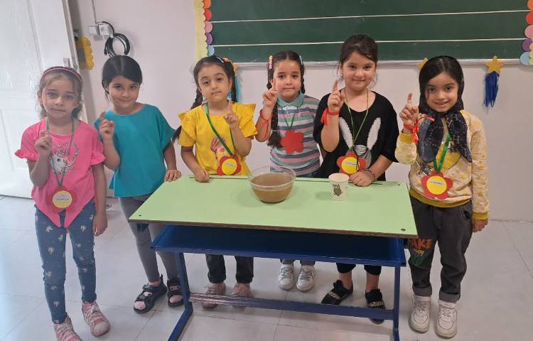 کلاس فارسی امروز ما : در کلاس فارسی امروز ابتدا درباره نحوه مشارکت و کارگروهی با دختران عزیزم گفت و گو داشتیم بعد از گروه بندی، دانش آموزان با صف وارد حیاط مدرسه شده و با میز های پر از وسایل مختلف مثل سینی، نمک، سوزن پلاستیکی و کاموا، خمیر بازی و چوب خط مواجه شدند و فعالیت هایی در جهت تقویت انگشتان دست (عضلات ریز) جهت آمادگی برای نوشتن انجام شد.آموزگار پک های دست ورزی را در اختیار گروه های دانش آموزان قرار داد. به گروه اول سینی آرد داده شد تا بر روی آن لوحه را نقاشی کنند. به گروه دوم سوزن و کاموا داده شد تا مانند لوحه دوخت را انجام دهند. به گروه سوم نیز خمیر بازی داده شد تا شکلی همانند لوحه بسازند و با چشمان بسته روی آن دست بکشند. به گروه چهارم چوب خط داده شد تا شکل لوحه را با آن بسازند.