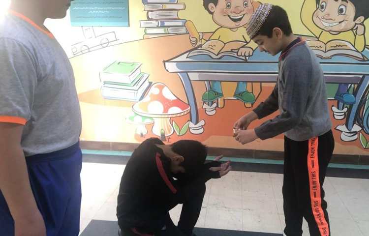 مستقر شدن بصورت دایره و ارائه یک حرکت از هر دانش اموز برای تمرین گرم کردن.