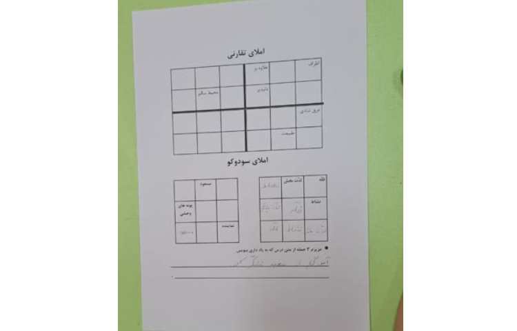 فعالیت: املا از درس سوم فارسی، خرس کوچولو، گفته شد.