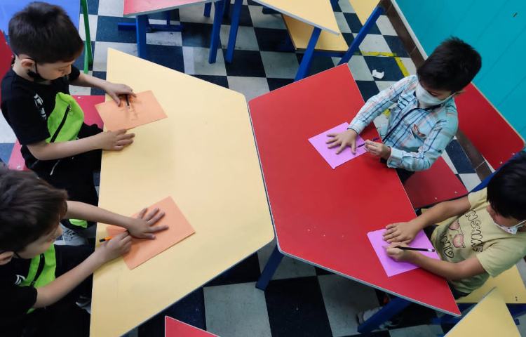 فعالیت: آموزش الگوی نوشتاری اشکال هندسی در کتاب و الگوی نوشتاری در دفتر شطرنجی انجام شد .