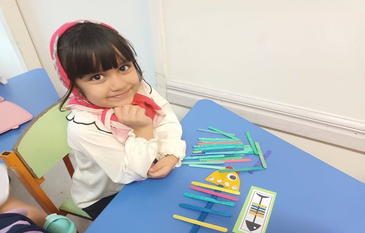 1. قسمت ابتدایی شماره دوزی طرح پروانه در کلاس توسط دخترانم انجام شد.