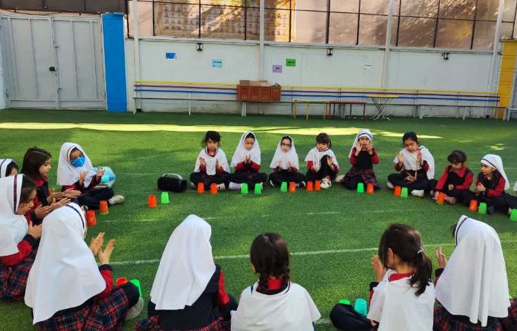 وارم آپ به منظور آمادگی بدنی و گرم شدن عضلات و افزایش ضربان قلب و افزایش تعداد تنفس و بهبود گردش خون و متابولیسم انجام گرفت. 2) بازی شناختی رنگ ، با هدف مهارت حرکتی دویدن و حرکت سکسکه و تعامل دوستی و هماهنگی چشم و پا انجام گرفت. 3 ) بازی ترکیبی بادی پرکاشن و چوبک و لیوان با هدف تقویت دو نیمکره ی مغز و هماهنگی و نظم گروهی و تقویت حافظه ی کاری انجام گرفت .