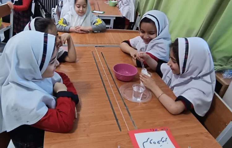 انجام آزمایشات مربوط به هفته علوم(خمیر جادویی، تابلو حبوبات ) با مشارکت دانش آموزان در گروه های چهارخانه انجام شد.