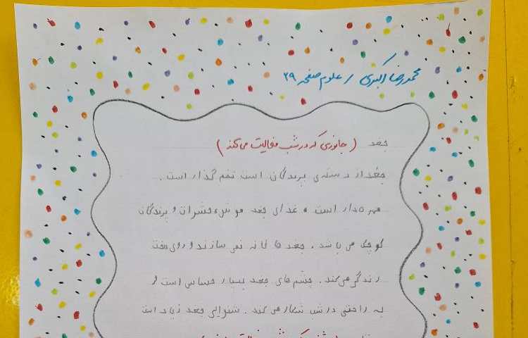 در این جلسه حیوانات بزرگ و کوچک مرور شدند و دانشآموزان با تفاوت اندازهی آنها آشنا شدند. در پایان، بازی هدفمندی برای مرور و تقویت نام حیوانات انجام شد تا یادگیری در فضایی شاد و تعاملی تثبیت شود.