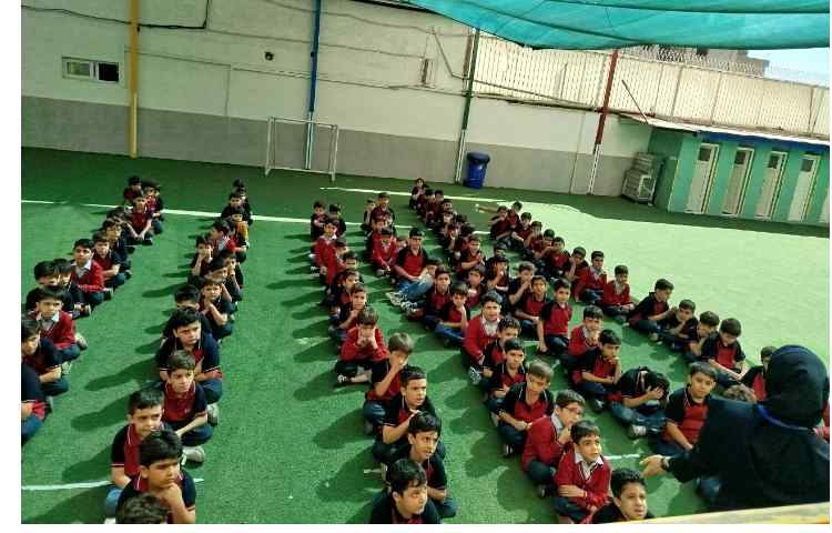 فعالیت: تعدادی از دانش آموزان در فضای حیاط مدرسه درس پیامبر مهربان روان خوانی کردند