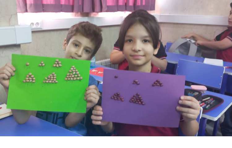 جدول شگفت انگیز در دفتر شطرنجی توسط خود بچه ها تشکیل و با تکه های کاغد رنگی تکمیل شد .