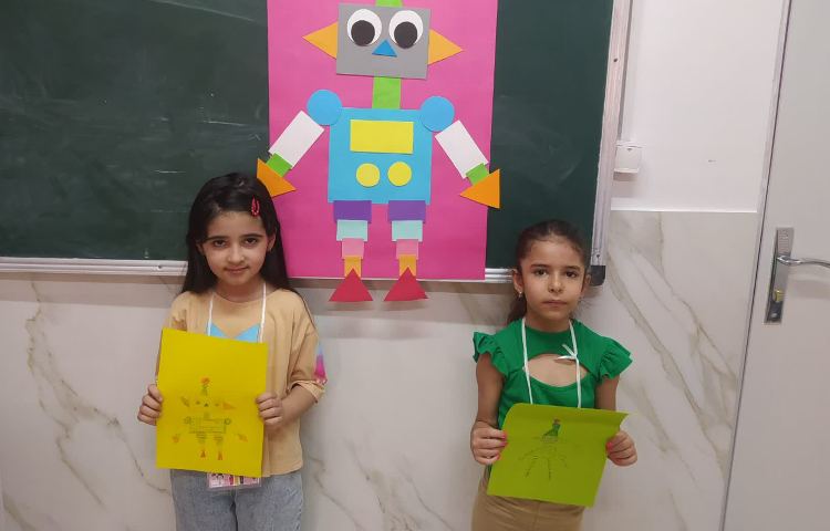 این جلسه دانش آموزان با استفاده از عدد 4 و 2 انگلیسی دو حیوان کوسه و فلامینگو کشیدند و یاد گرفتند که با برخی از اعداد میتوان نقاشی های زیبا کشید.