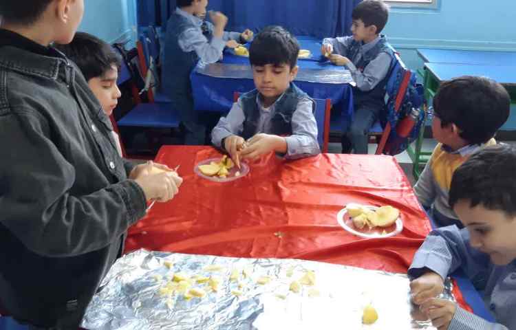 در این جلسه دانش آموزان با استفاده از کاغذرنگی(کلاژ یک شاخه درخت انار) را درست کردند.