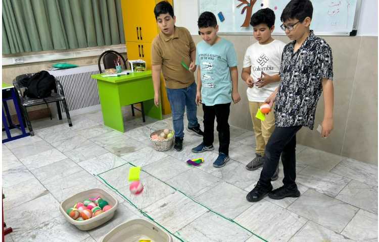 ابتدا جهت برگزاری تولد به حیاط رفتیم و بعد از آن گل پسرها بازی های گروهی انجام دادند.
