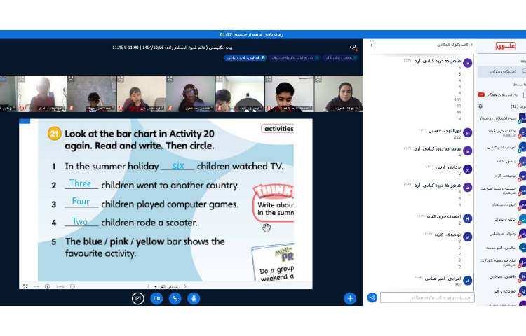فعالیت: دانش آموزان با نحوه شماره گذاری صفحه آشنا شدند page number همچنین درسهای گذشته به دانش آموزان یادآوری شد