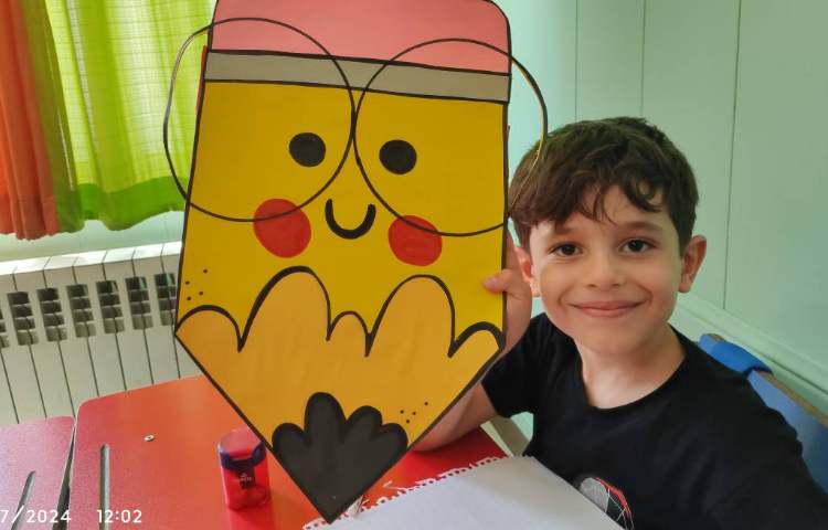 معرفی آقای مداد وآموزش مداد دست گرفتن انجام شد .آموزش خط زمینه انجام شد .فعالیت تمرینی جهت تقویت عضلات دست آن انجام شد .
