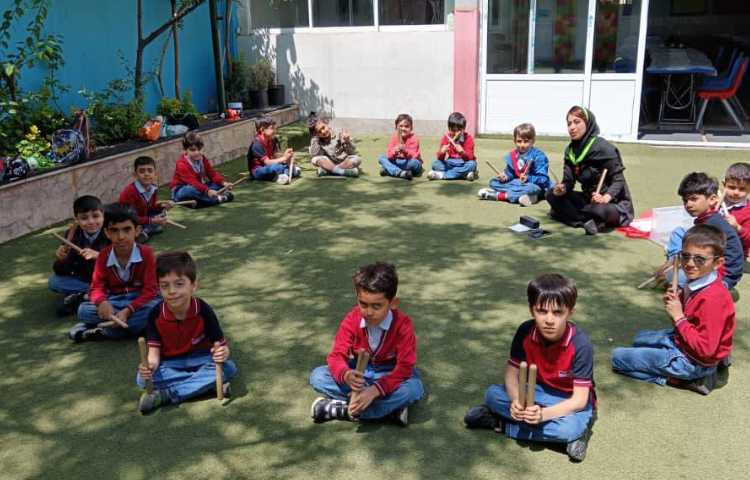 بازی حرکتی با ابزار چوبک با هدف مهارت پایداری و تقویت عضلات دست،هماهنگی چشم و دست با موزیک ،انجام شد.