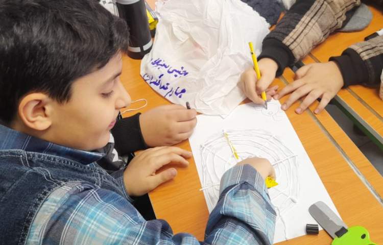 فعالیت: تمرین دست ورزی روی کار برگ با پاستل و آموزش طرز درست گرفتن پاستل و تمرین آیات قران سوره توحید و شعر زمستان