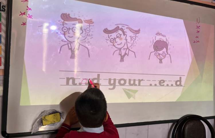 حروف ناخوانا در کلاس تدریس و عبارات قرآنی در کلاس توسط دانش آموزان خوانده شد.