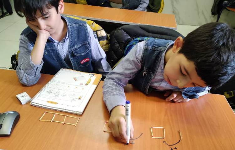 کتاب ریاضی، شروع تم 1 صفحههای 1 تا 5 (مباحث شمارش 1 تا 5، اشکال هندسی و الگوها) آموزش و انجام شد. دانشآموزان با کمک توپهای رنگی برروی شانه تخم مرغ الگو ساختند.