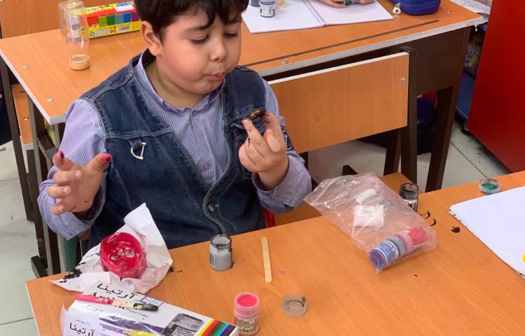 بازی سرانگشتی ( قراردادن چینه های رنگی در شانههای تخم مرغ به وسیله ی کارت های از قبل تعیین شده ) به جهت تقویت دقت دیداری انجام شد.