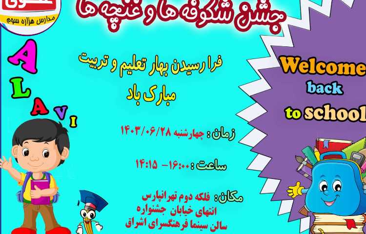 از دانش آموزان عزیز پایه پیش دبستان و اول دعوت می شود همراه یکی از اولیا گرامی در جشن شکوفه ها و غنچه ها شرکت نمایند.