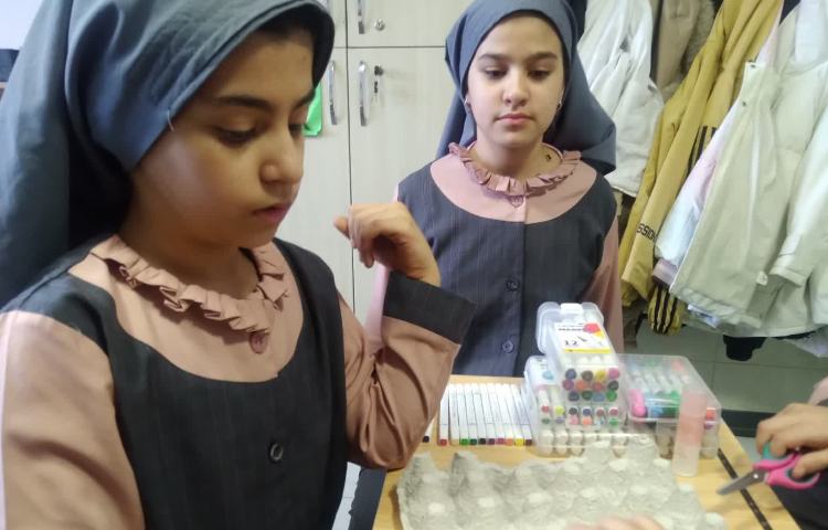 سبد را با نخ پشت دانشآموزان میبندیم، آنها باید تلاش کنند بادکنک را به بیرون از سبد بیاندازند و با استفاده از از تعداد تیک ها و فعل نوشته شده روی بادکنک جملهی صحیح را روی تخته بنویسند.