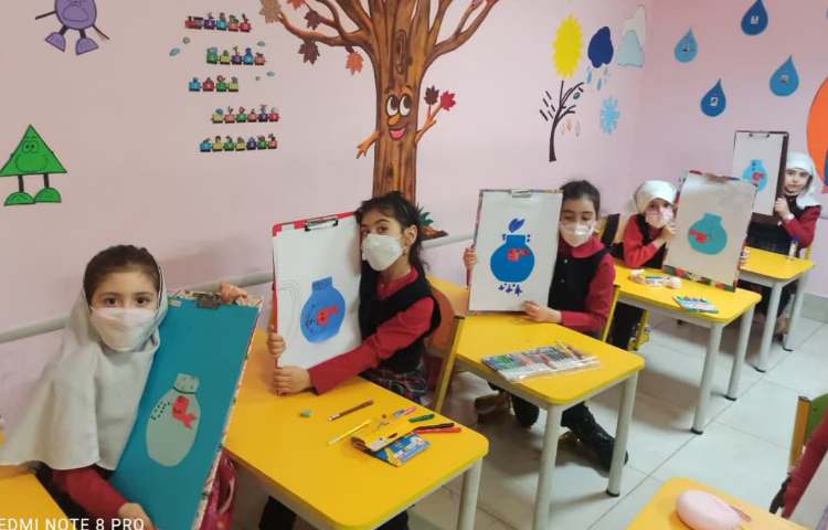 نقاشی خانه و درخت و پر کردن تصویر نقاشی شده با کاغذ رنگی های خرد شده