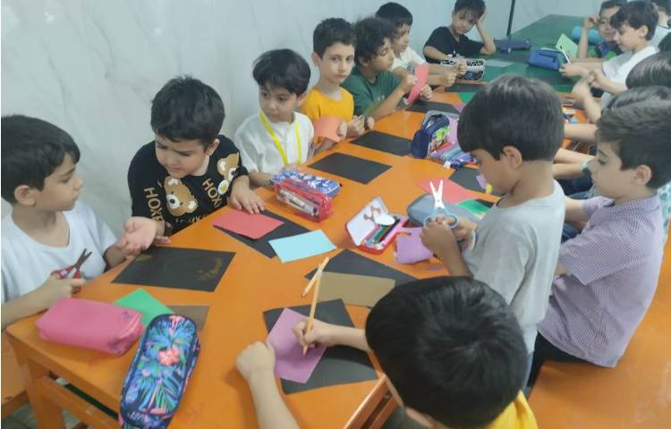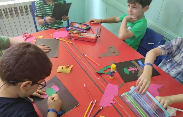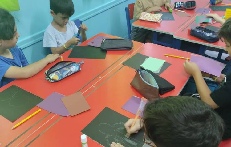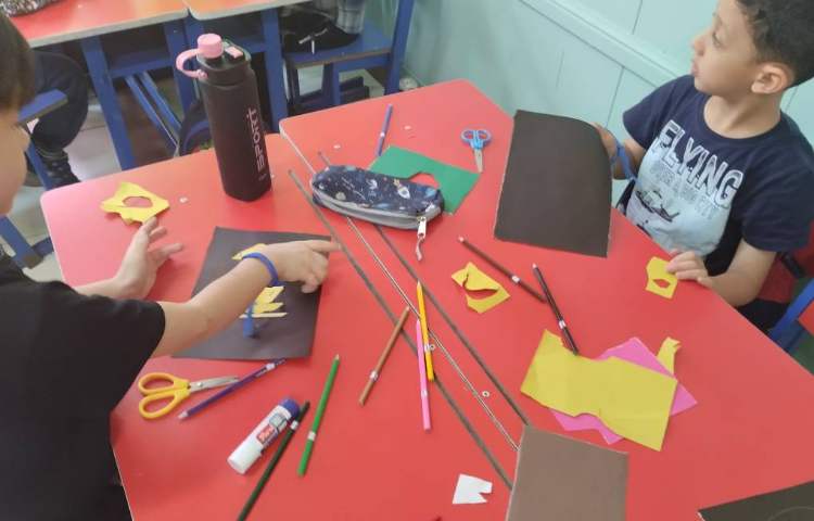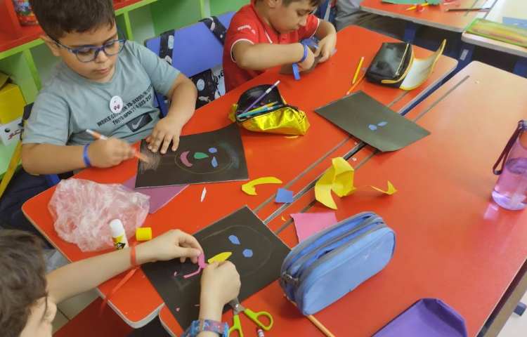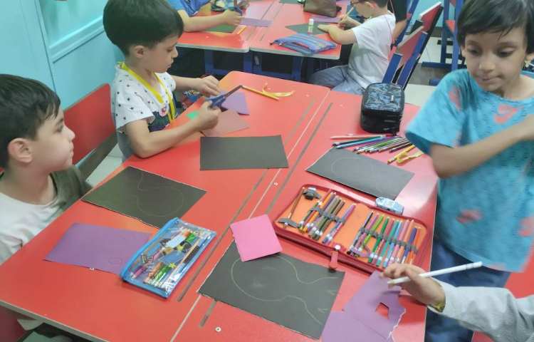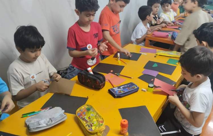 ساخت آدمک انتزاعی با کاغذ رنگی انجام شد.ابتدا روی پس زمینه مشکی تصویر آدمک مورد نظر کشیده شد سپس با کاغذ رنگی اجزای صورت آدمک به صورت کلاژ ساخته شد.در انتها قسمت های باقیمانده آدمک با مداد رنگی رنگ شد.