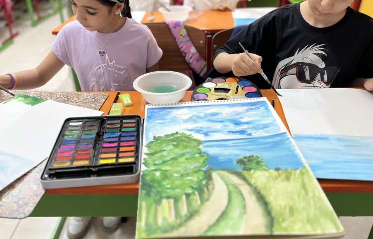 دانش آموزان با استفاده از خاک و بذر گندم و شاهی یک باغچه درست کردند تا در جلسات بعدی با اضافه کردن نقاشی و صورتک سفالی کار خود را تمام کنند.