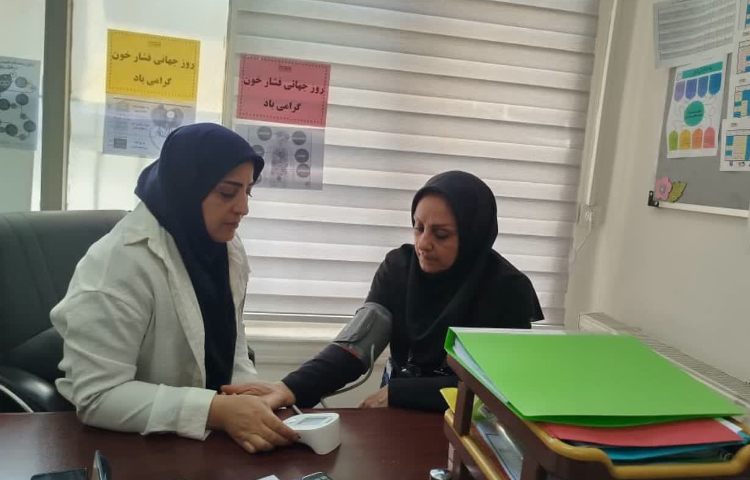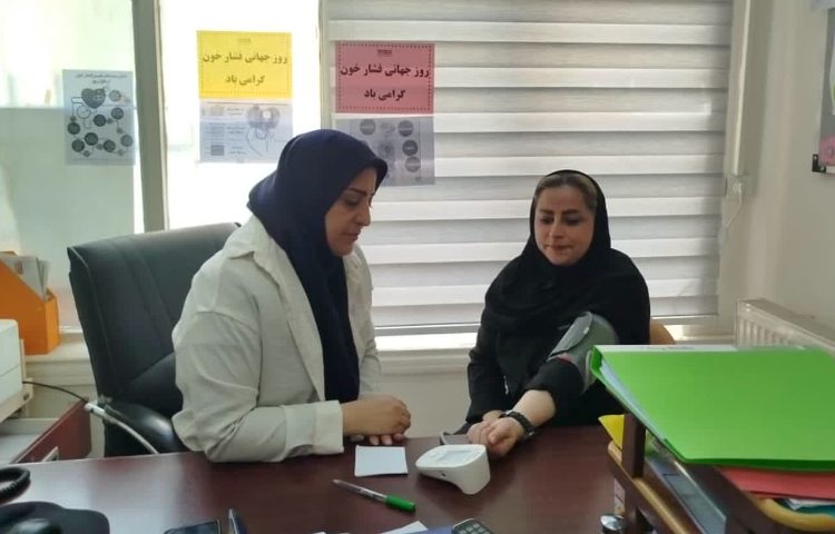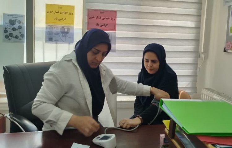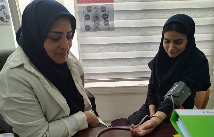 انجام تست فشار خون از همکاران و توضیح در مورد عوامل موثر و نشانه های فشارخون بالا و خوراکی های موثر در کاهش فشار خون